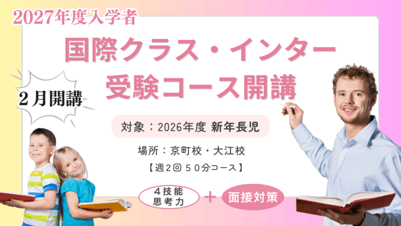 英会話ビッグアップルでは、2027年1月の「熊本大学教育学部附属小学校・国際クラス」、またインターナショナルスクール受験に向けた特別対策コースを2026年2月より開講いたします。
